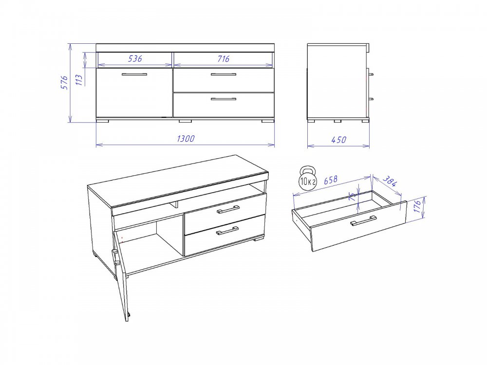 Размер ШхГхВ: 1300*450*576 мм