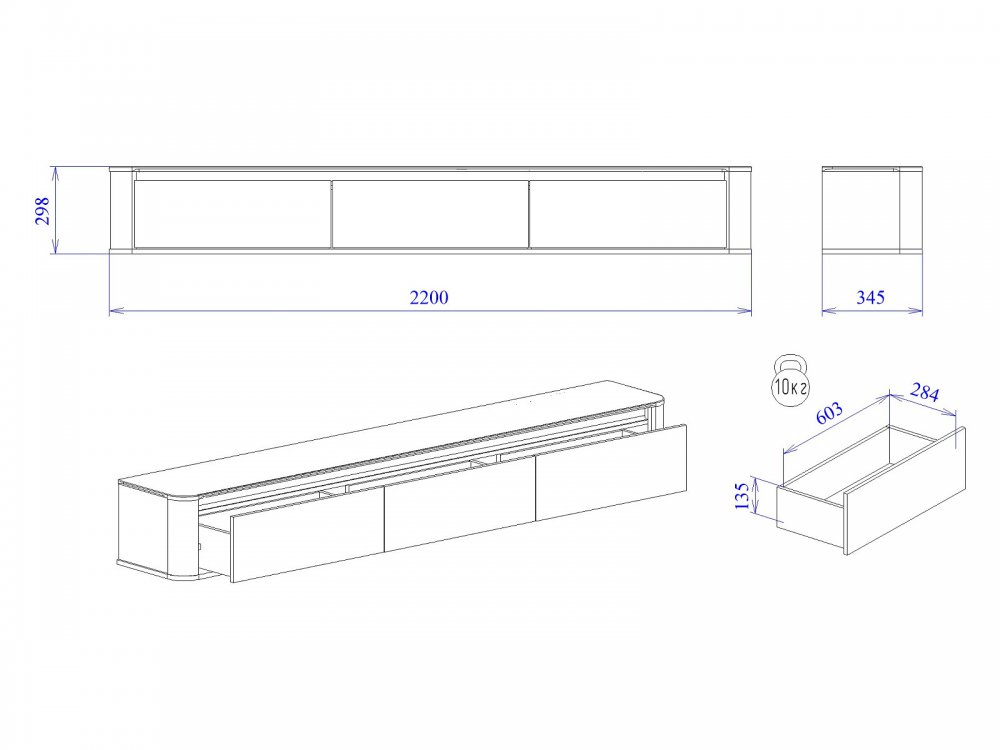 Размер ШхГхВ: 2200*345*298 мм