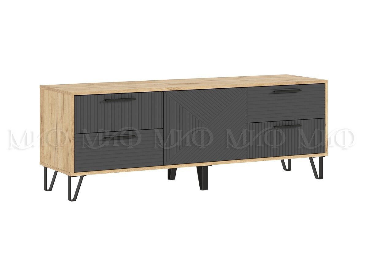 - Тумба ТВ (1500) Флэш Браш Графит, Дуб Крафт