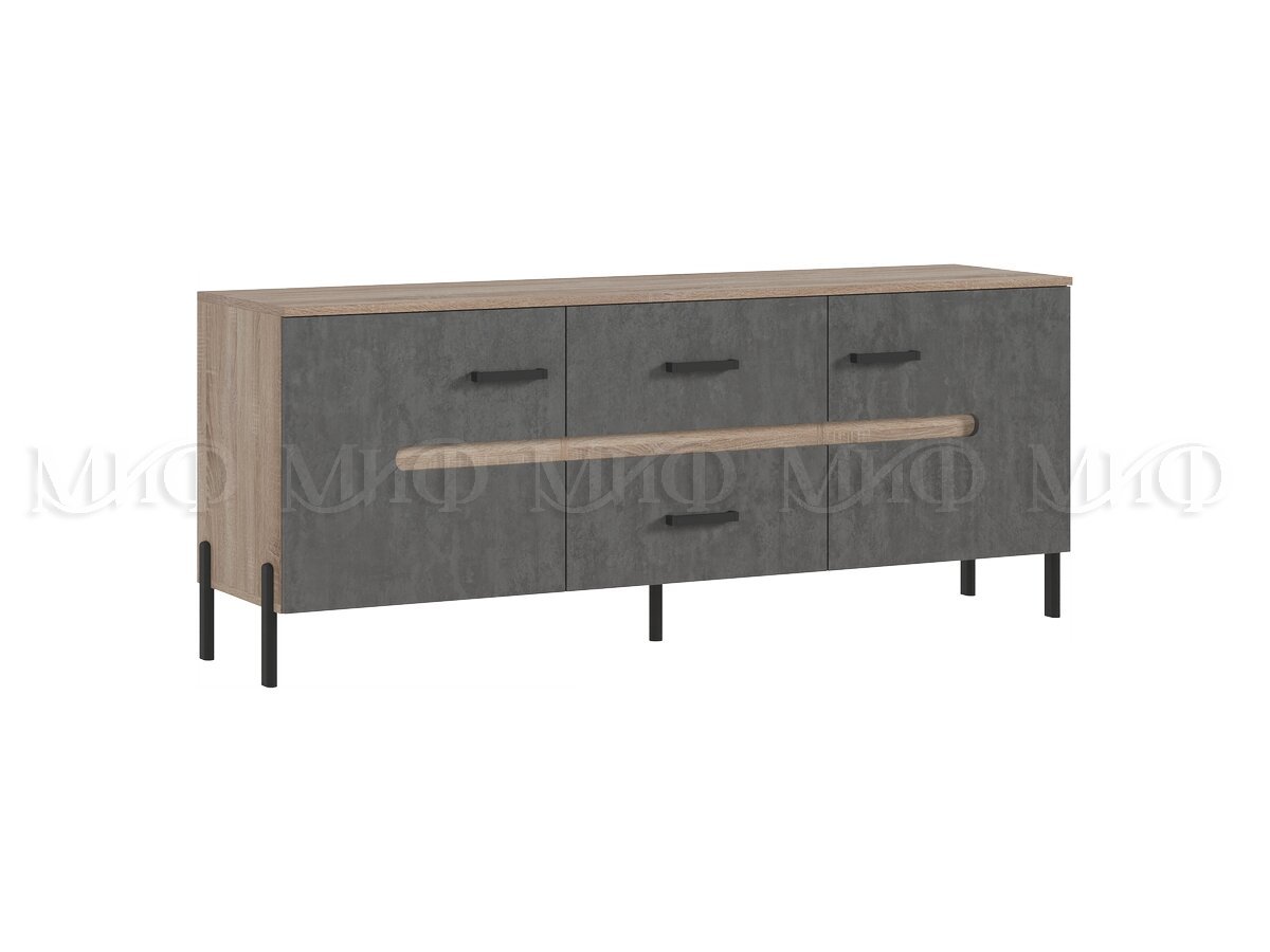 - Тумба ТВ (металл) Ким Бетон Темный, Дуб Сонома