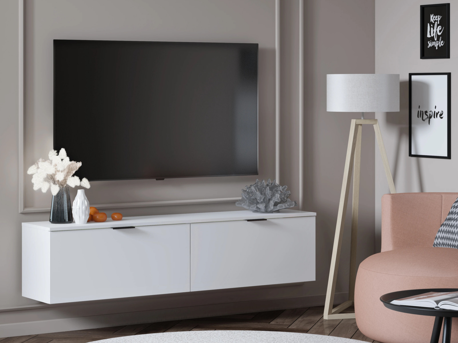 - Тумба ТВ Осло М22 ручка торцевая Белый/Белый