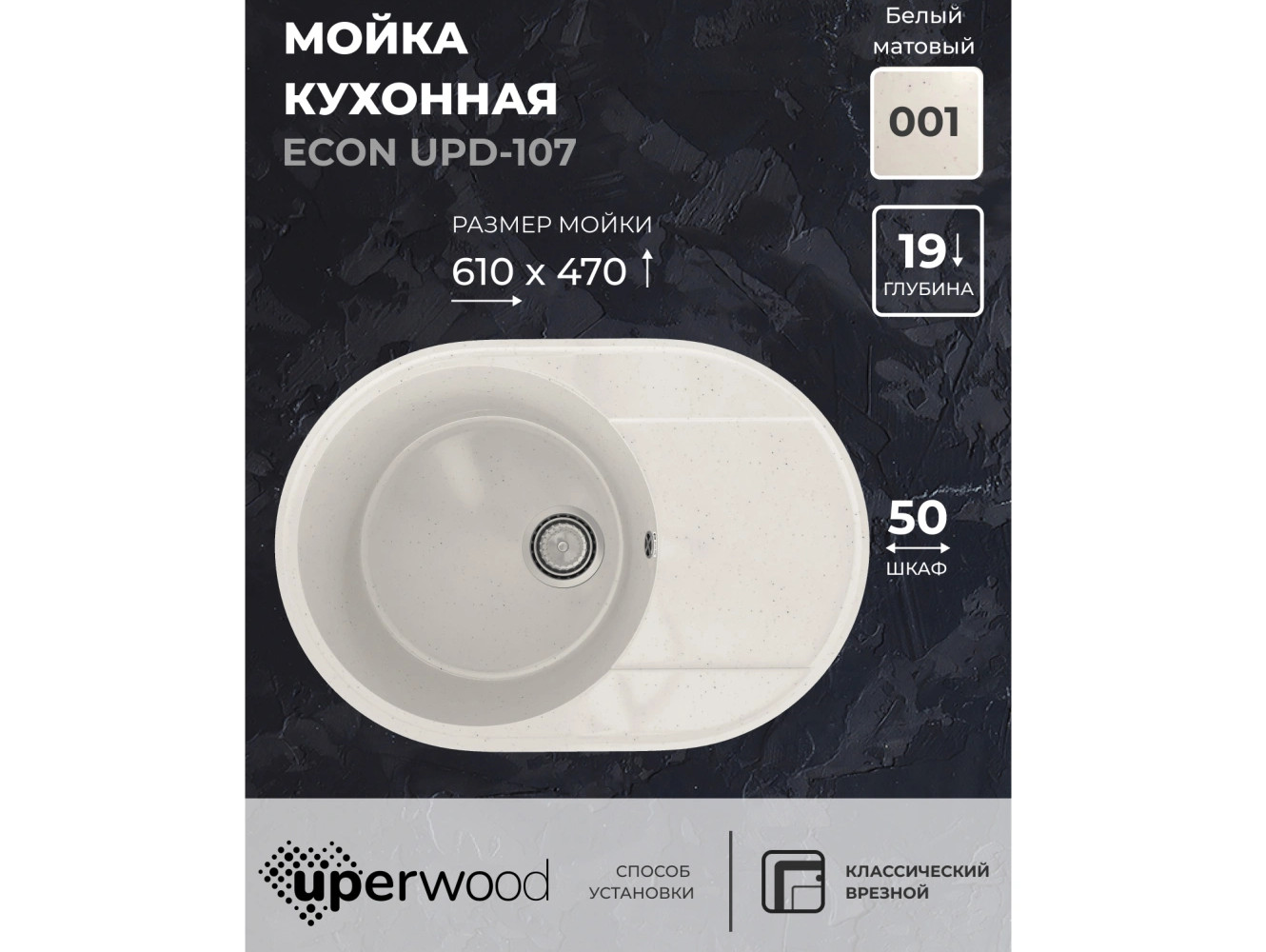 Кухонная мойка Uperwood ECON UPD-107-001 белая матовая
