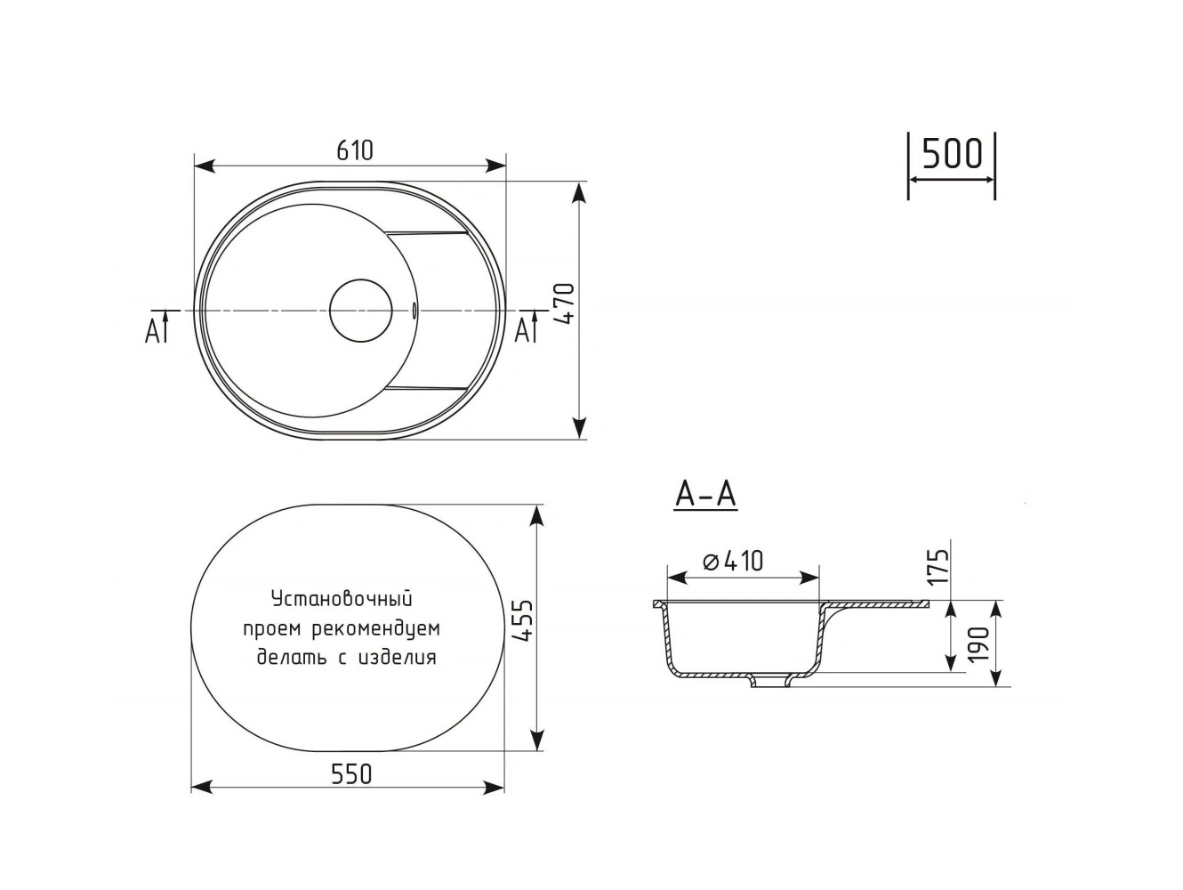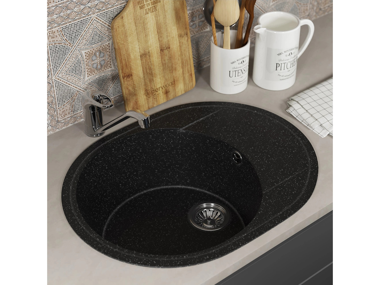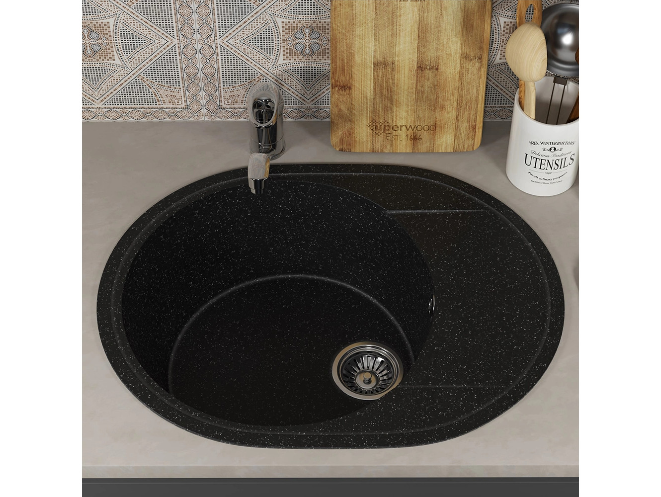 - Кухонная мойка Uperwood ECON UPD-107-004 черная матовая