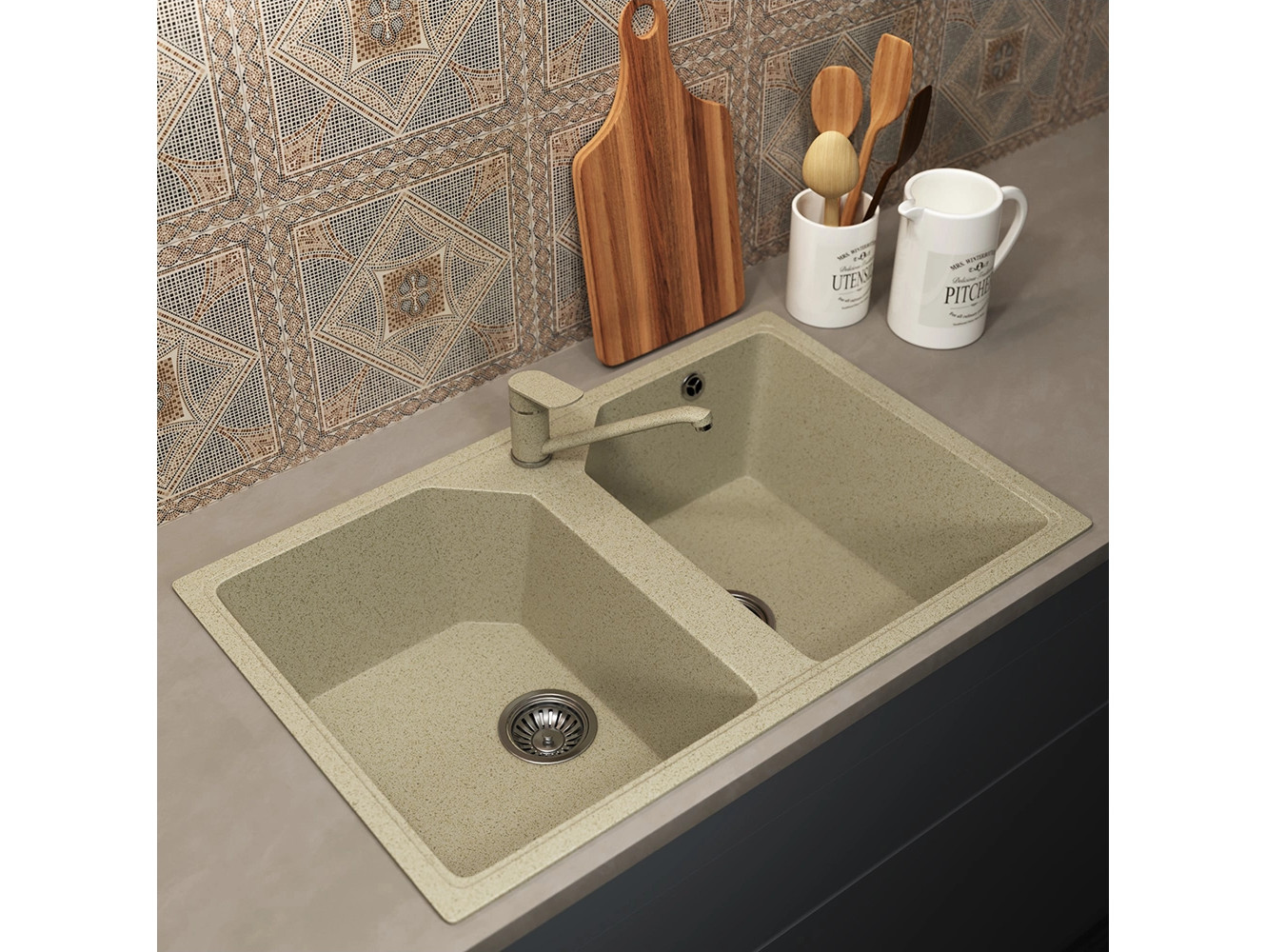 - Кухонная мойка Uperwood ECON UPD-402-002 бежевая матовая