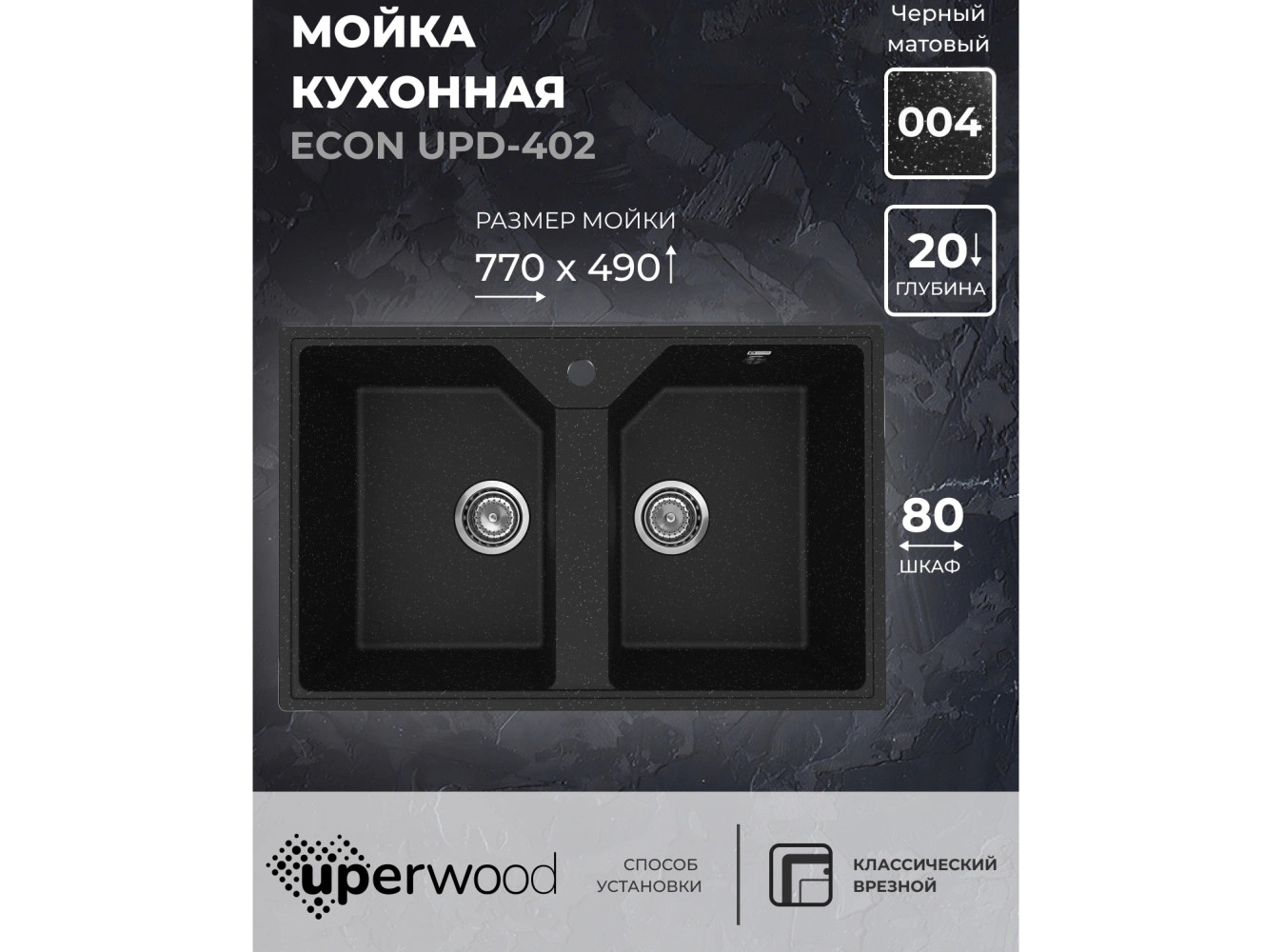 - Кухонная мойка Uperwood ECON UPD-402-004 черная матовая