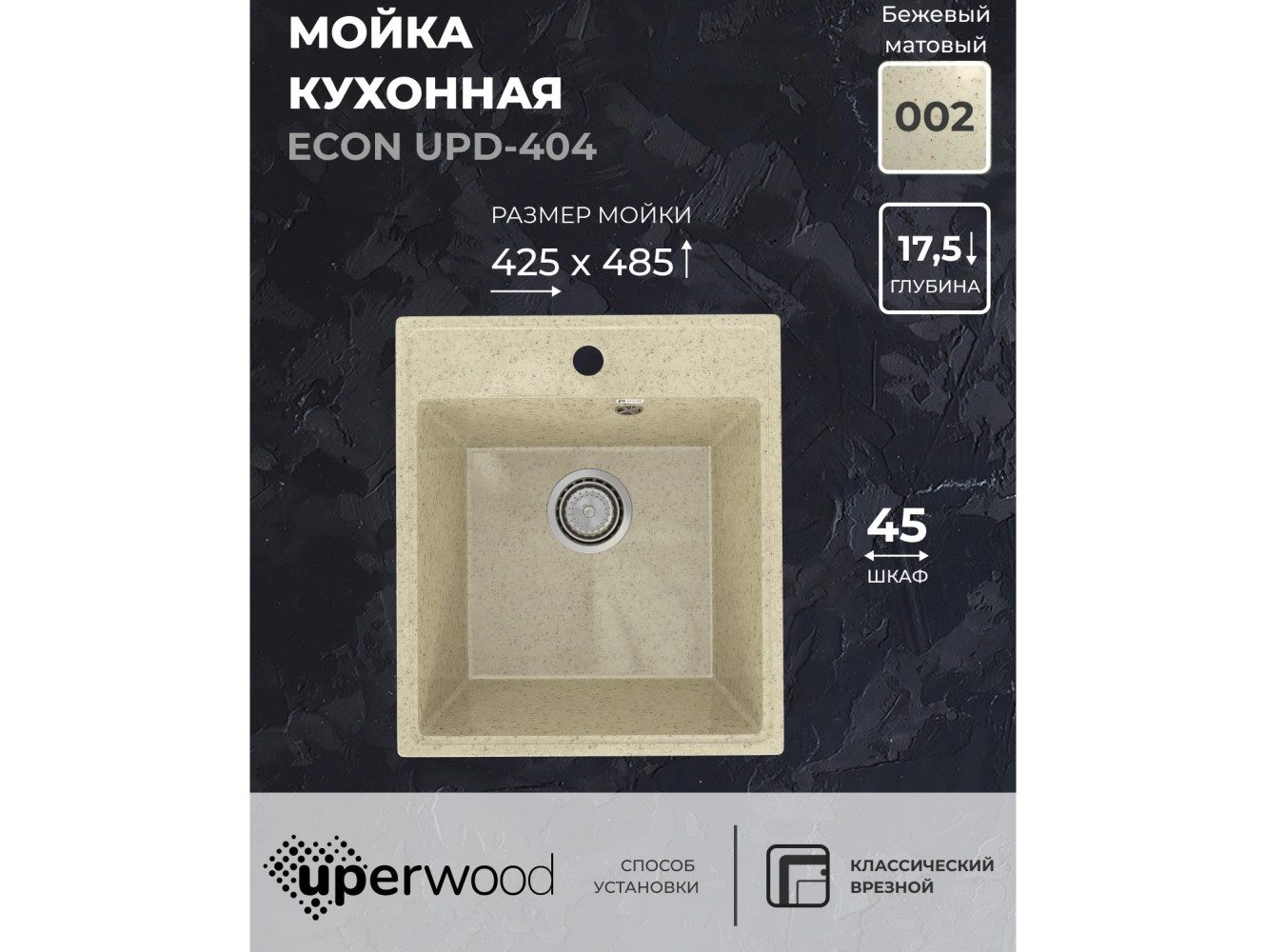 - Кухонная мойка Uperwood ECON UPD-404-002 бежевая матовая