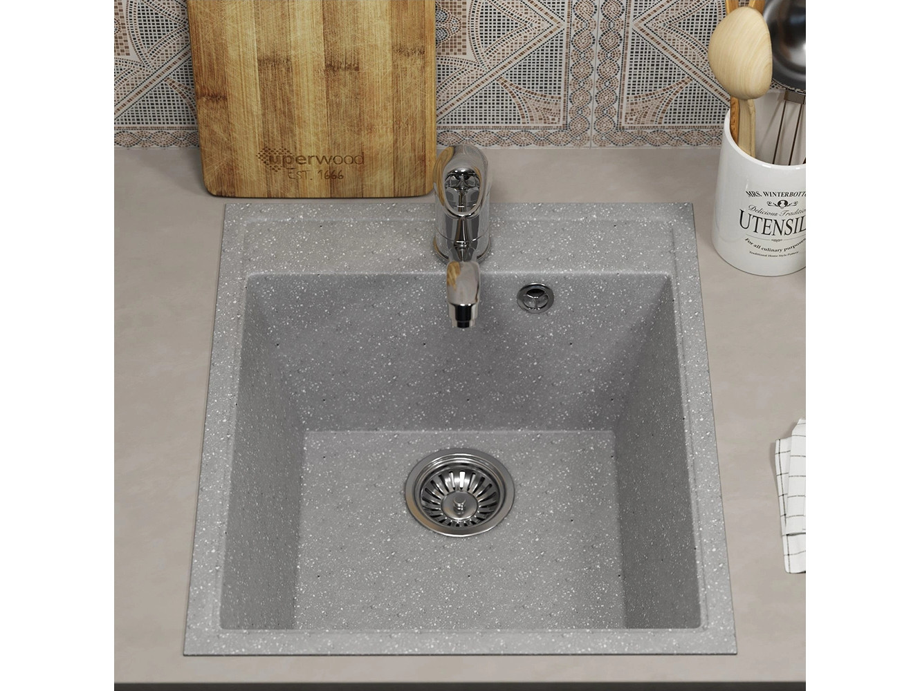- Кухонная мойка Uperwood ECON UPD-404-003 серая матовая
