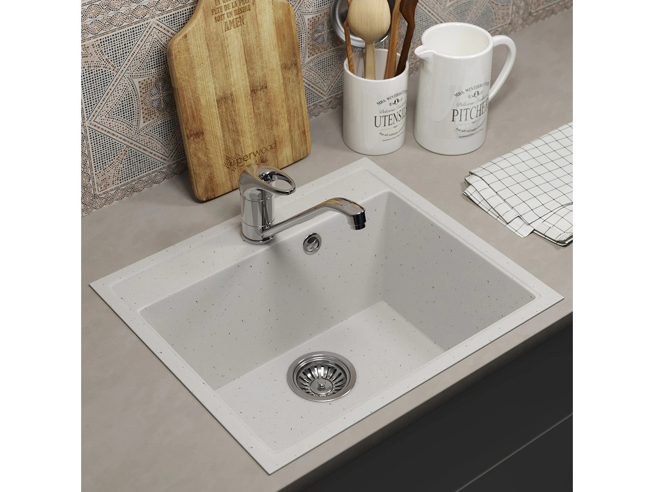 - Кухонная мойка Uperwood ECON UPD-408-001 белая матовая