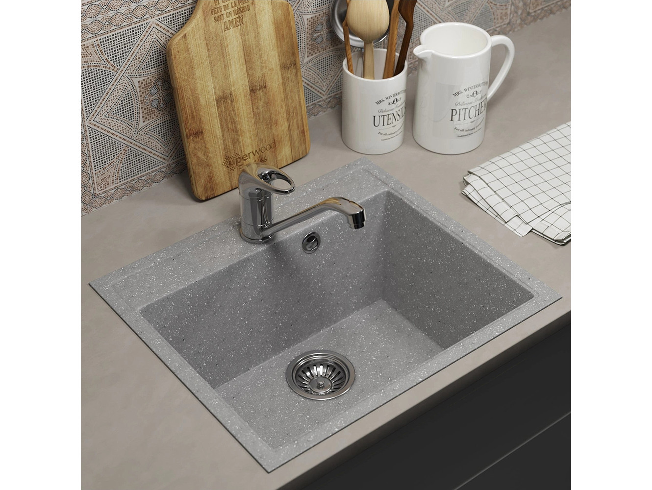 - Кухонная мойка Uperwood ECON UPD-408-003 серая матовая
