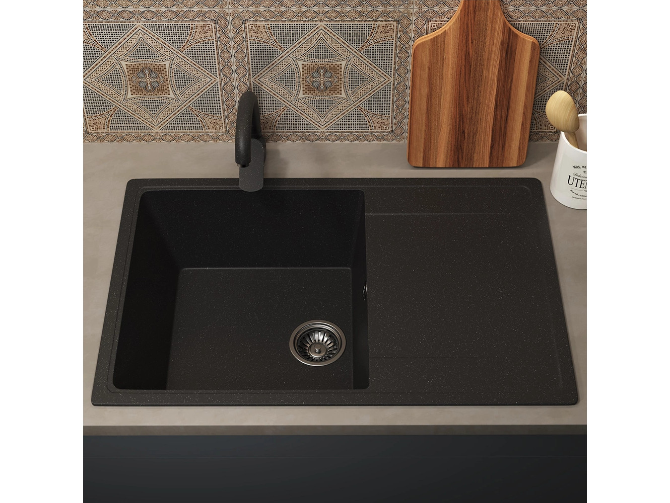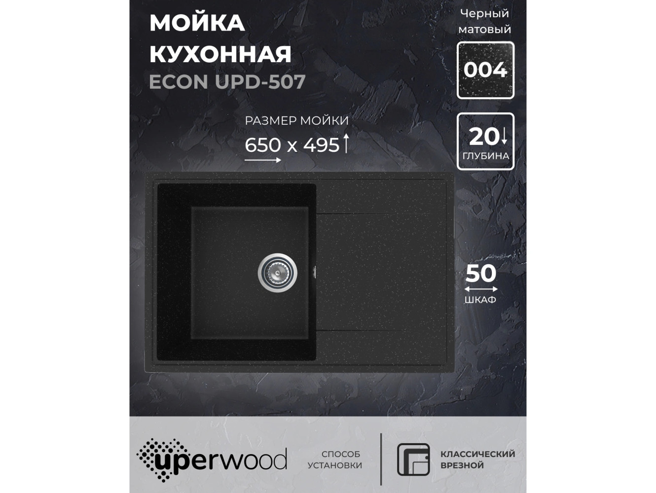 - Кухонная мойка Uperwood ECON UPD-507-004 черная матовая