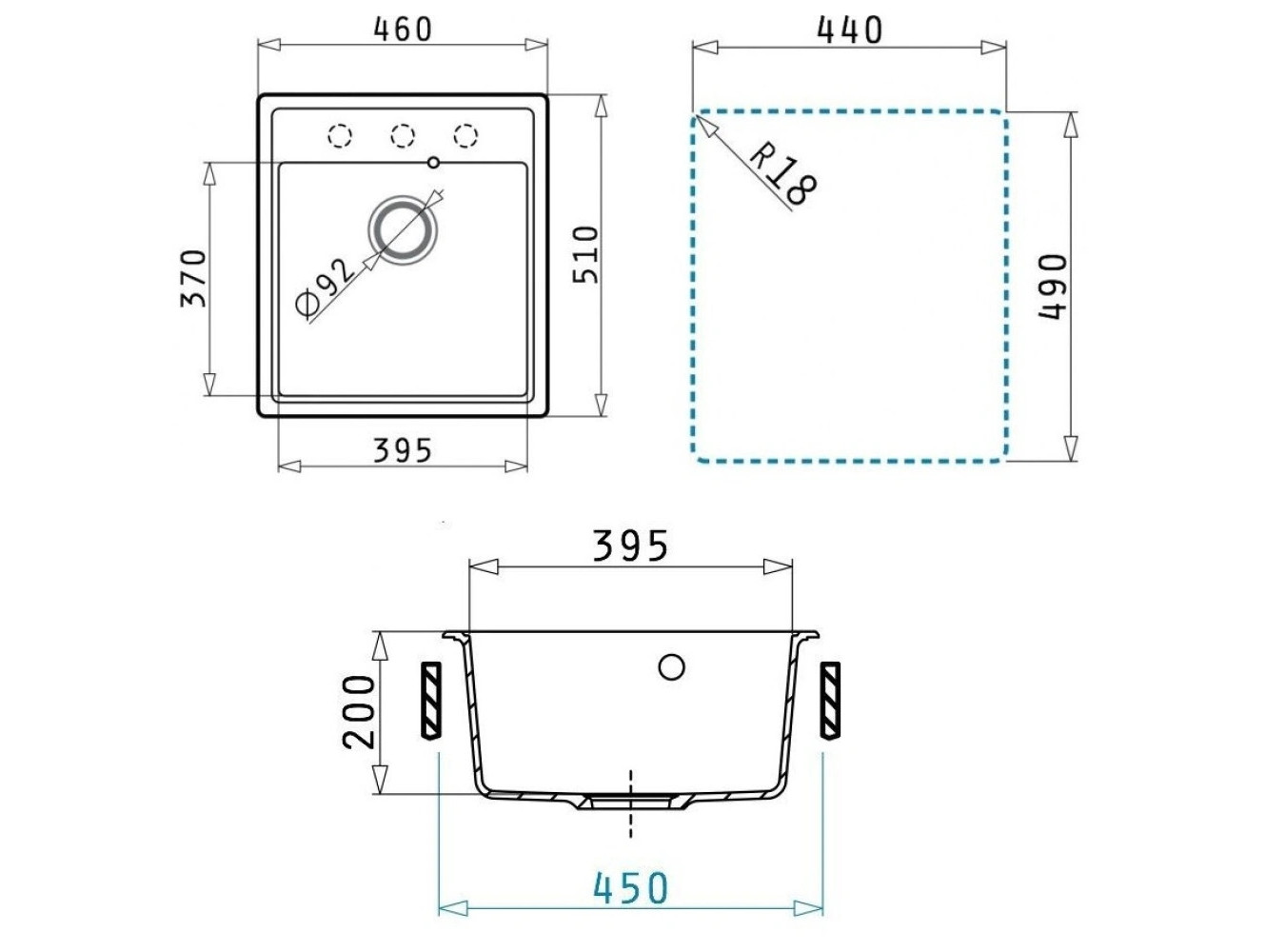- Кухонная мойка Uperwood Quartz UPD-07-04 черная матовая