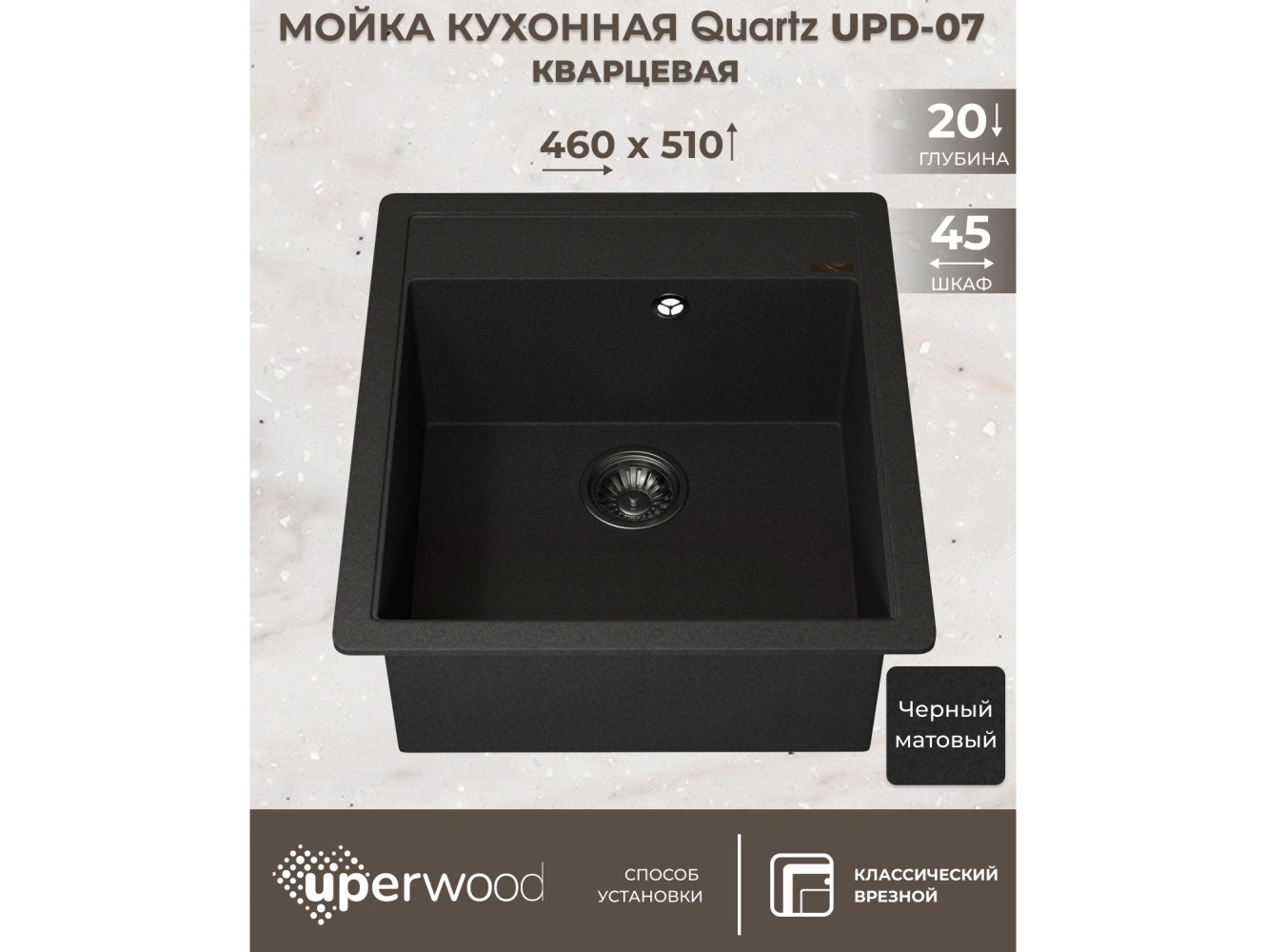 Кухонная мойка Uperwood Quartz UPD-07-04 черная матовая