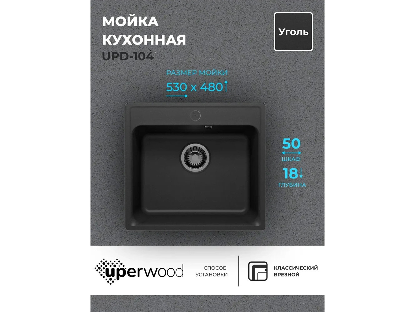 - Кухонная мойка Uperwood UPD-104 уголь