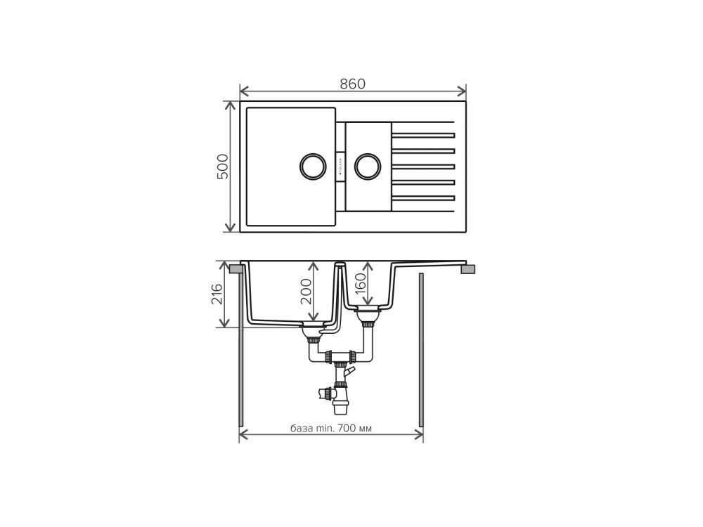Длина мойки, мм: 860