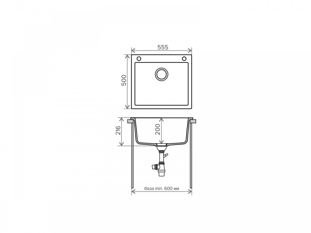 Минимальный размер тумбы под мойку, мм: 600