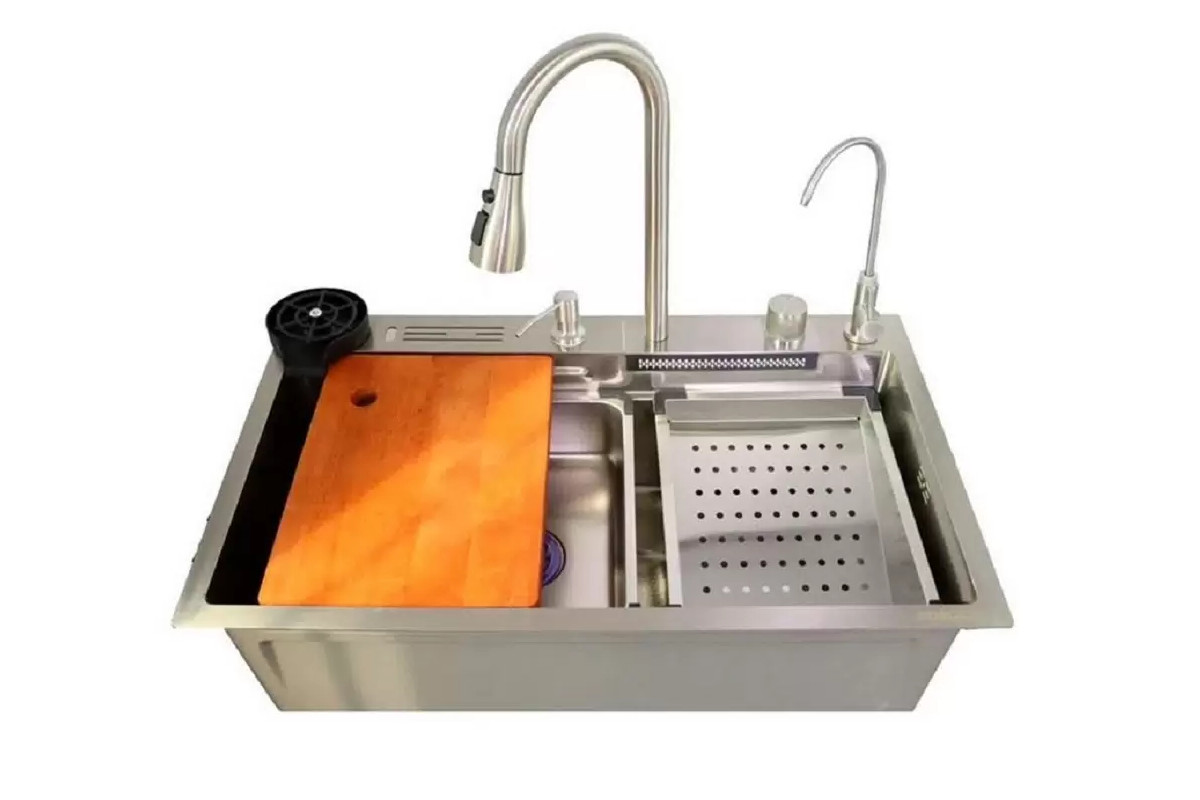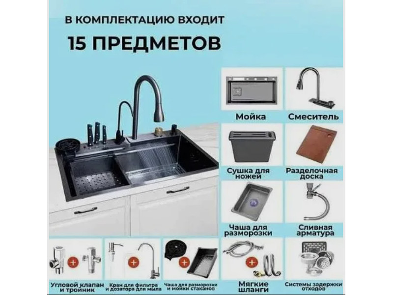 Данная мойка идет в размере 75*46*22 см. Выдвижной кран имеет 4 типа слива воды для различных целей. Поверхность мойки обработана нанотехнологическим покрытием, поэтому она не боится царапин. Мойка сочетает в себе функциональность и стильный дизайн, что делает ее отличным выбором для любого интерьера. Она легко впишется в любой интерьер и будет гармонично сочетаться с другой кухонной утварью. Многофункциональность мойки позволяет использовать ее для различных целей. Вы можете мыть посуду, фрукты и овощи, а также использовать ее для размораживания продуктов.