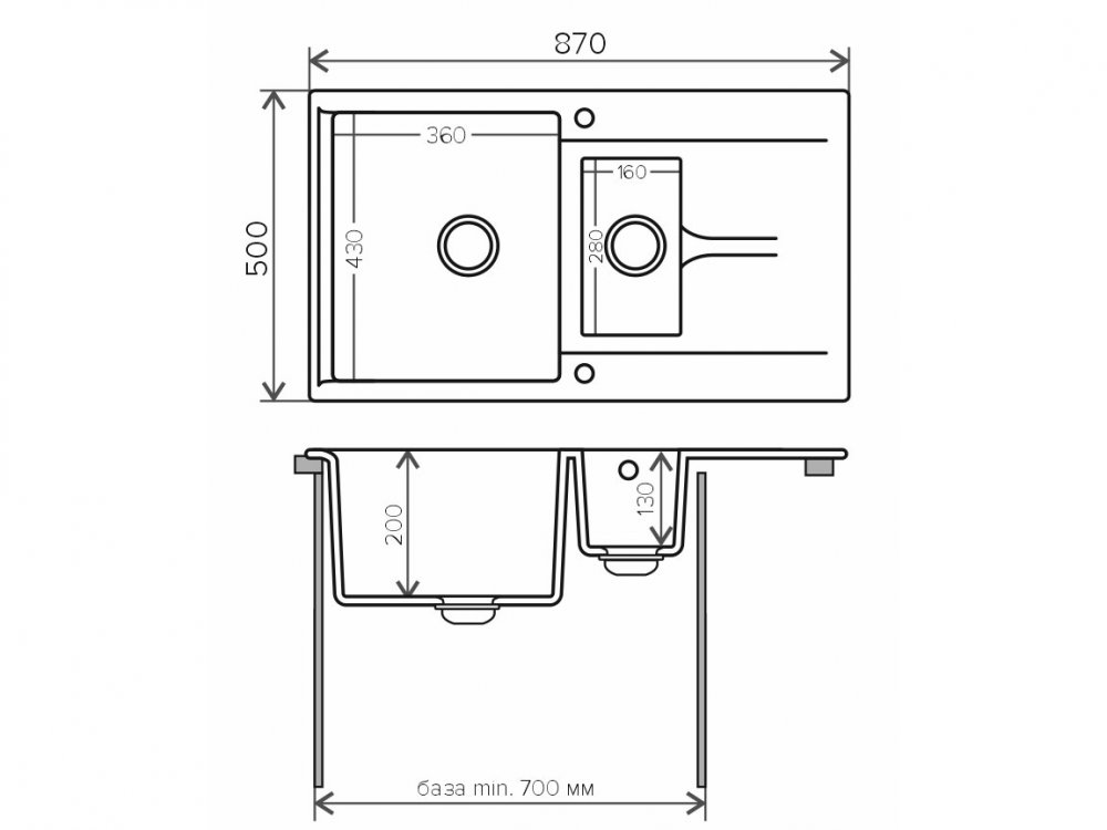 Размер дополнительной чаши (д*ш*г): 160*280*130