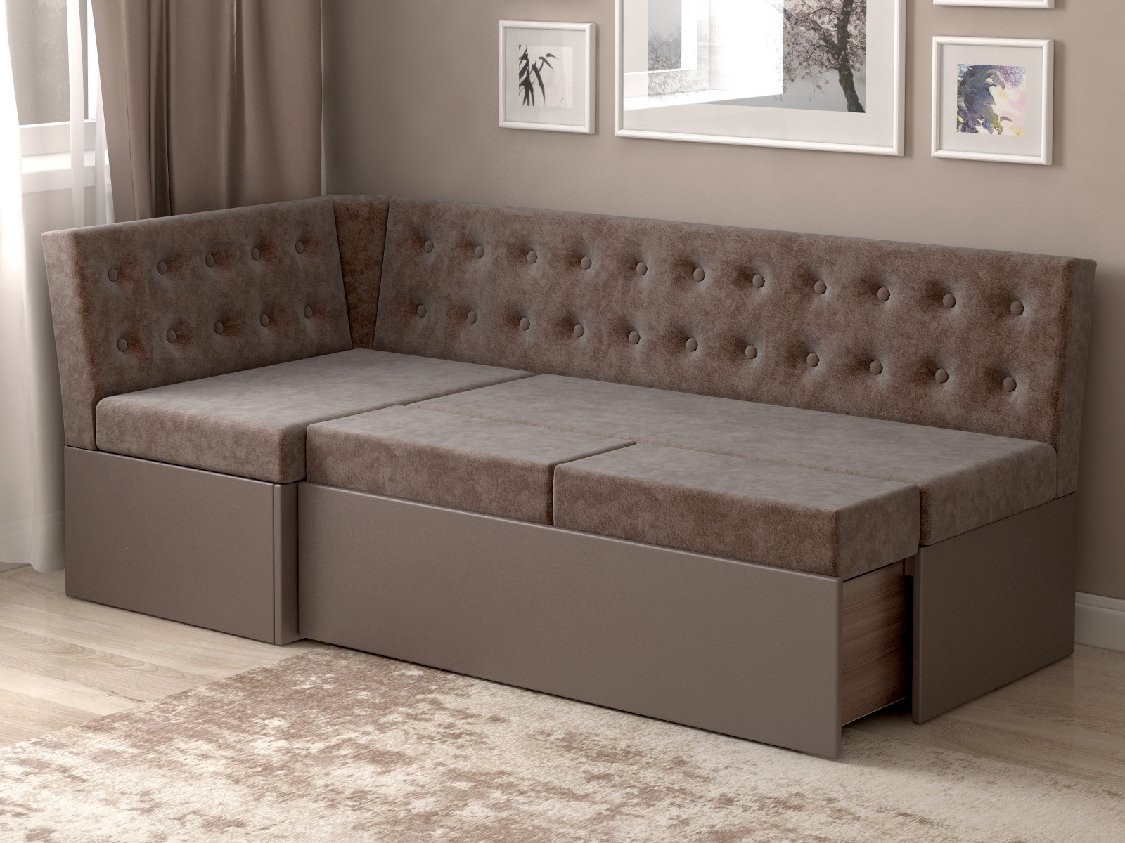 - Скамья угловая со спальным местом Олимп светло-серый