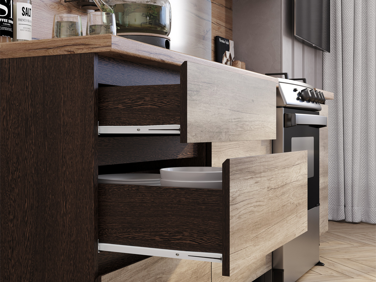- Столешница "Дуб кера" 38 мм в комплекте (1200/400 мм).