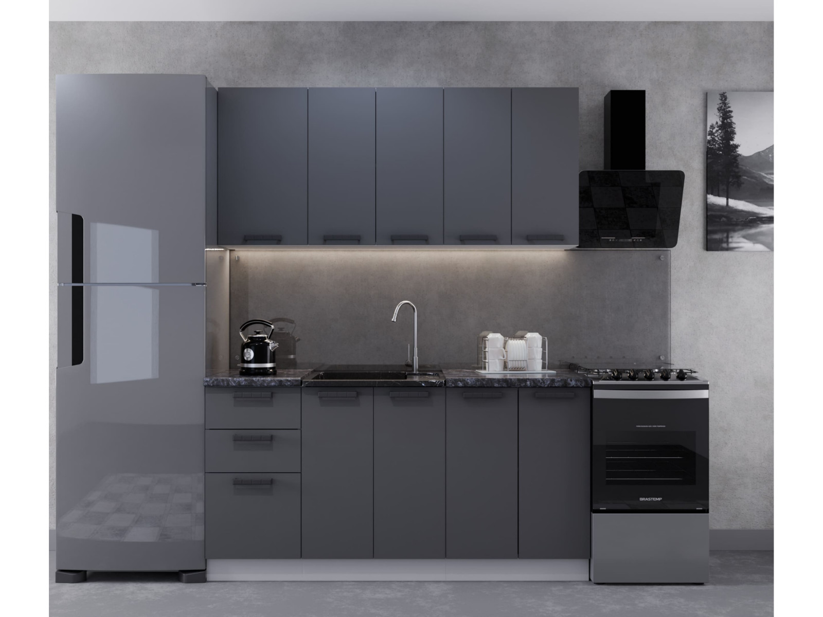 Кухонный гарнитур арт 16 Лайн Тальк Обсидиан 3000 мм