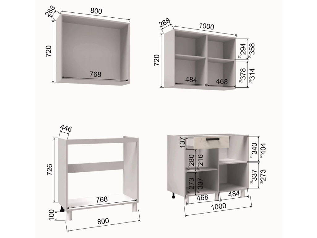 - Высота верхних шкафов, мм 720