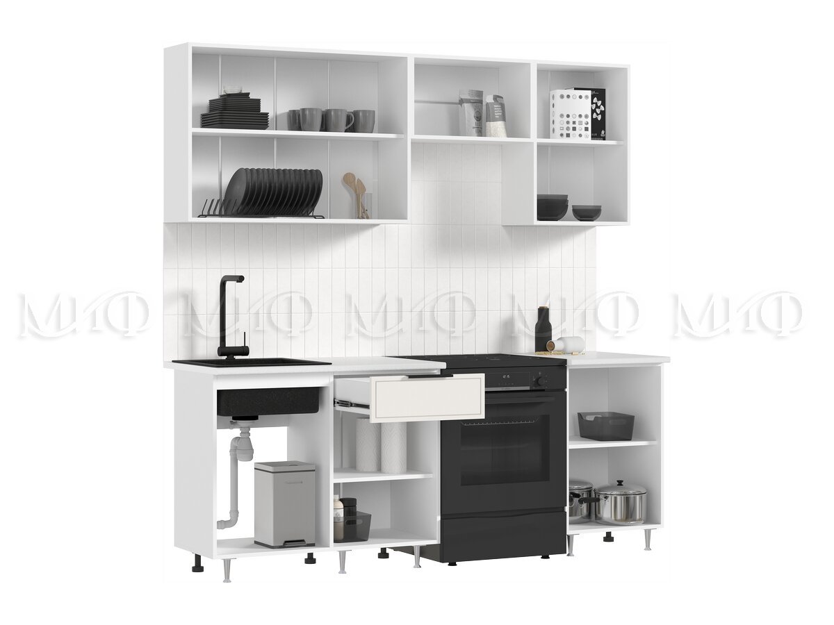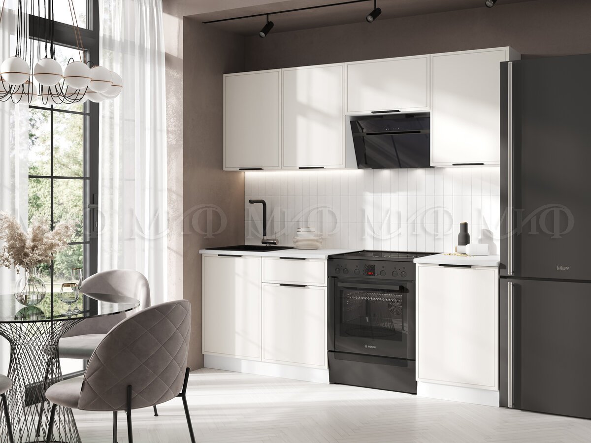 - Кухня Николь 2100 мм Холст белый