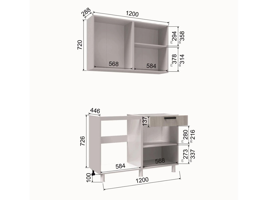 - Кухня Ривьера 1200 МДФ Карбон Фарфор без столешницы