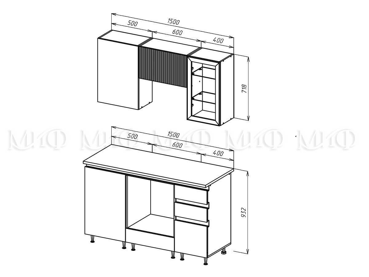 - Кухня Техно-6 1500 мм Графит/Атлантик софт