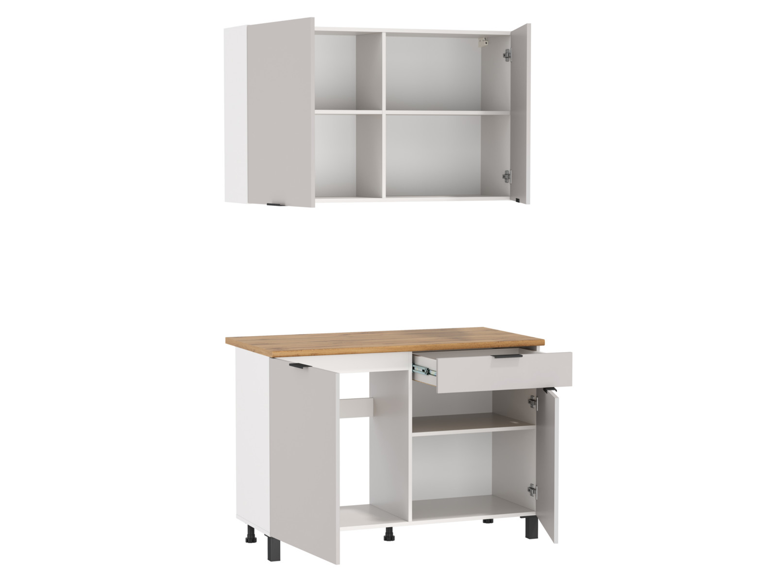 Цвет: белый / фасад: ЛДСП кашемир / столешница: дуб вотан / ДВПО: белый