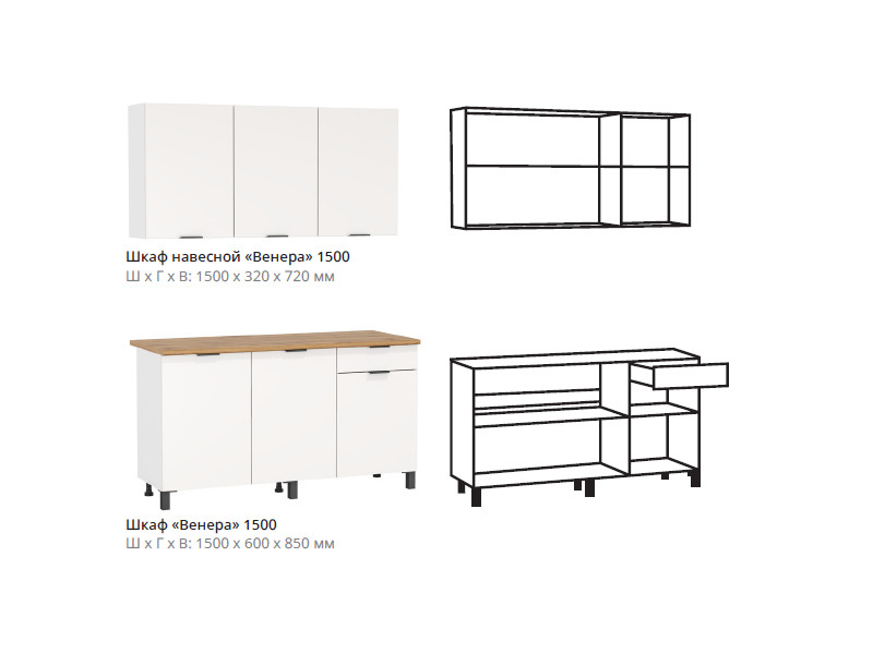 - Шкаф навесной "Венера" (1500) 720 x 1500 x 320