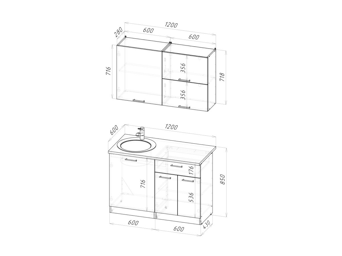 - Высота шкафов, мм 720