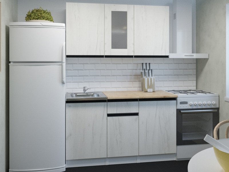 Мойка, смеситель, стеновая панель и посудосушитель в комплект гарнитура не входят.
