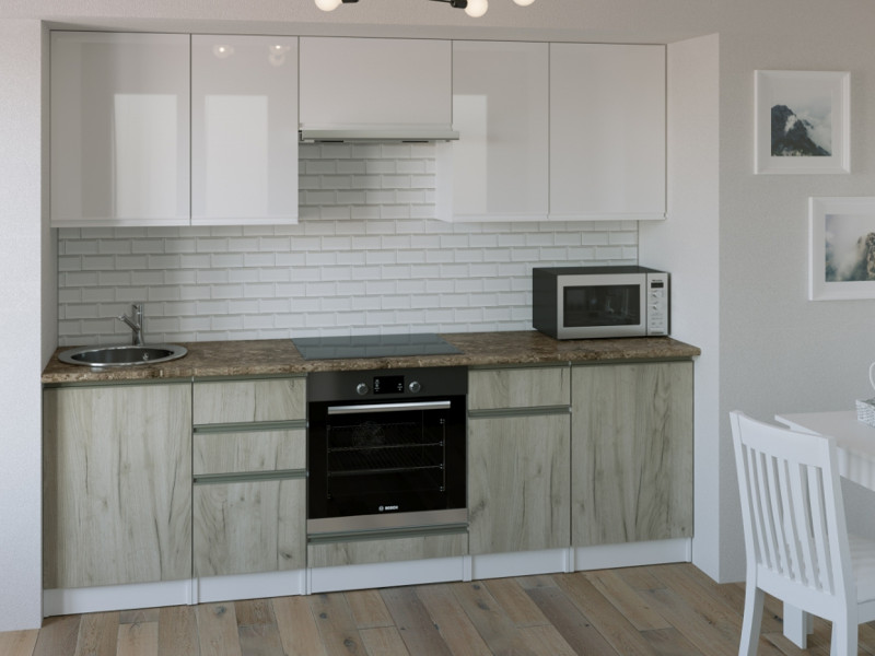 Мойки, смесители и посудосушители в комплекты гарнитуров не входят.