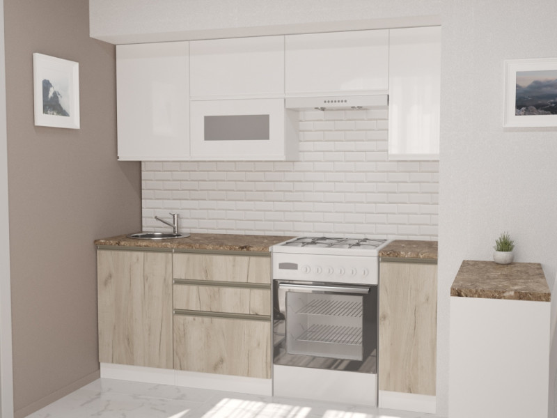 Мойки, смесители и посудосушители в комплекты гарнитуров не входят.