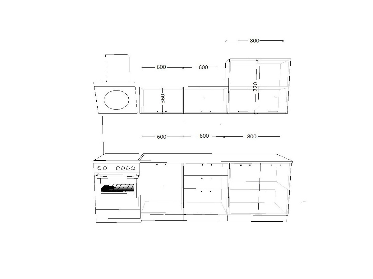 - высота верхних шкафов 720 мм