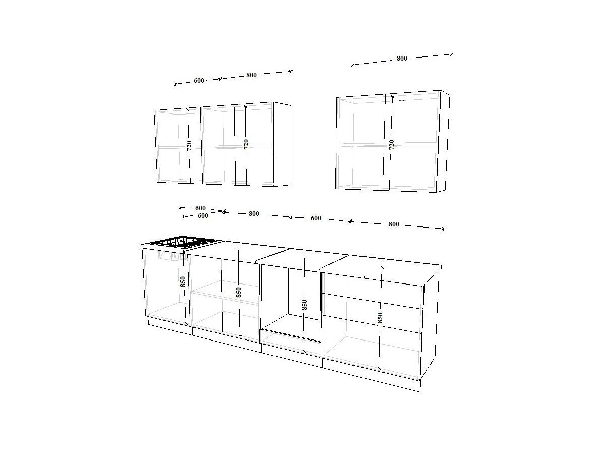 - высота верхних шкафов 720 мм