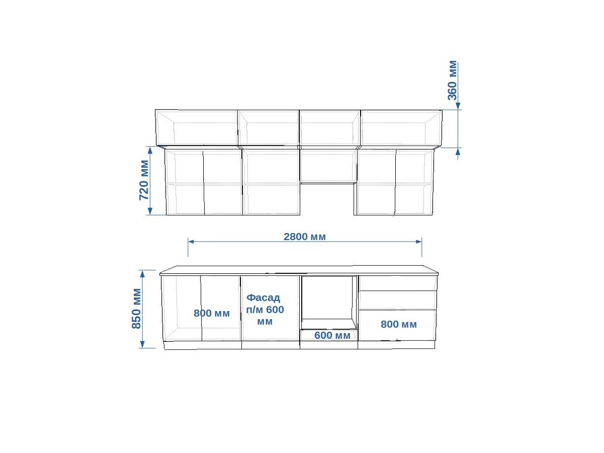 Кухонная мойка, стеновая панель, посудосушитель, планки для столешницы в комплект не входят.