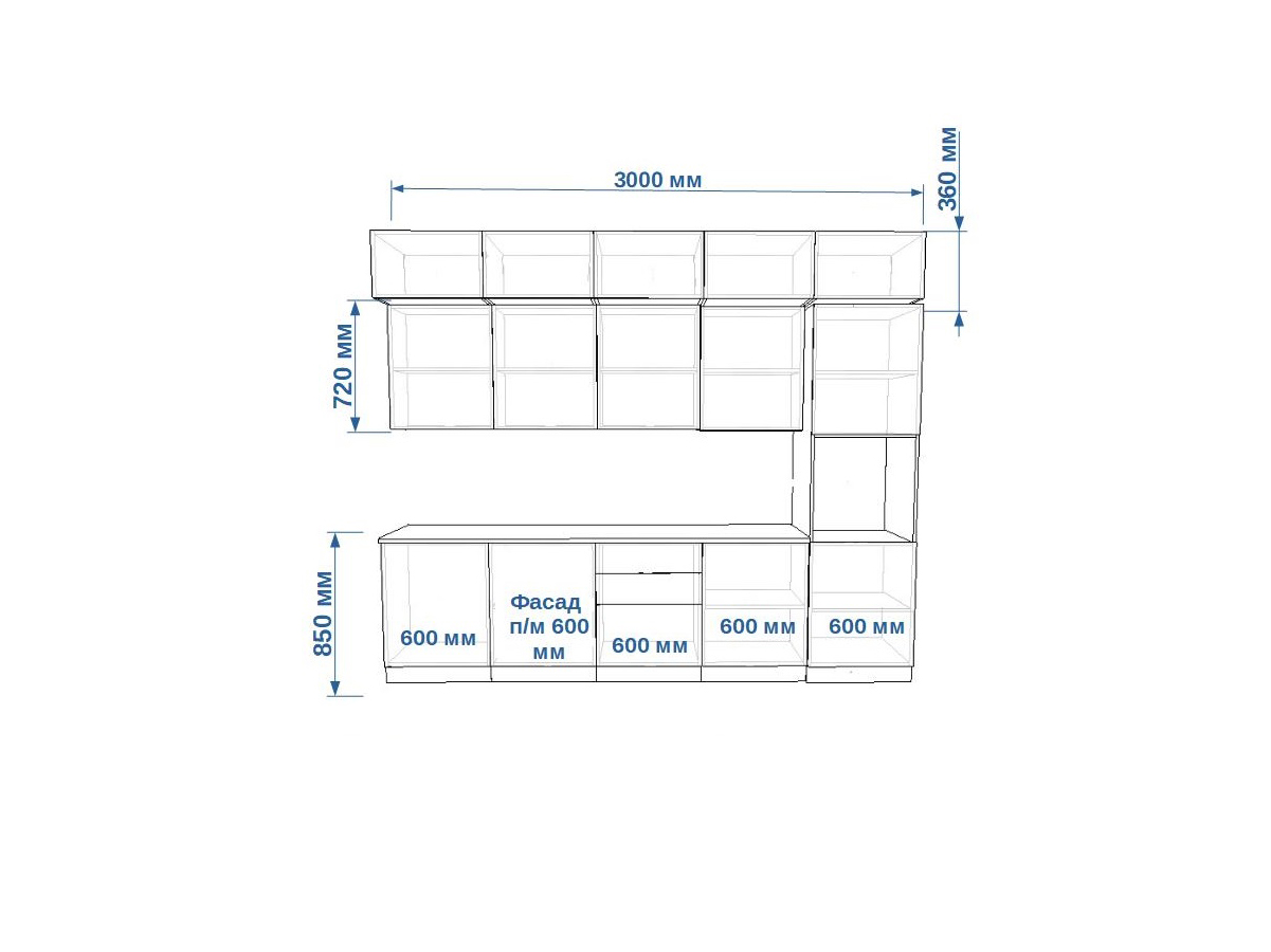 Кухонная мойка, стеновая панель, посудосушитель, планки для столешницы в комплект не входят.