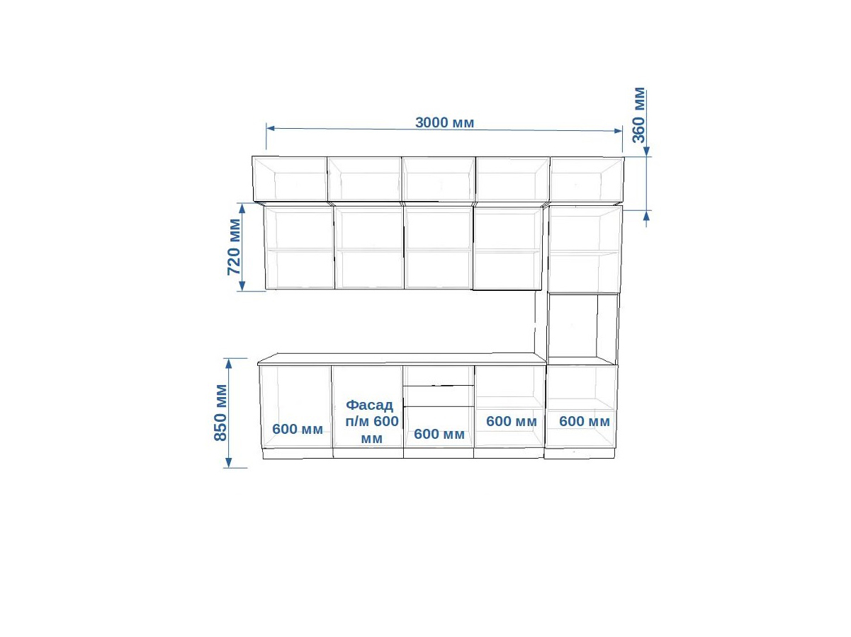 - Кухонный гарнитур арт 53 Лайн Обсидиан Тальк 3000 мм
