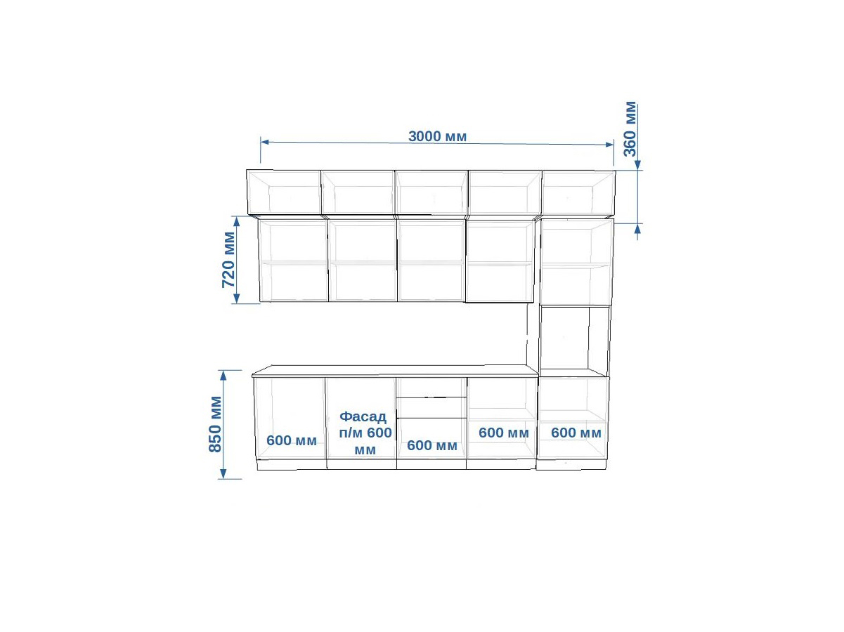 - высота верхних шкафов 720 мм