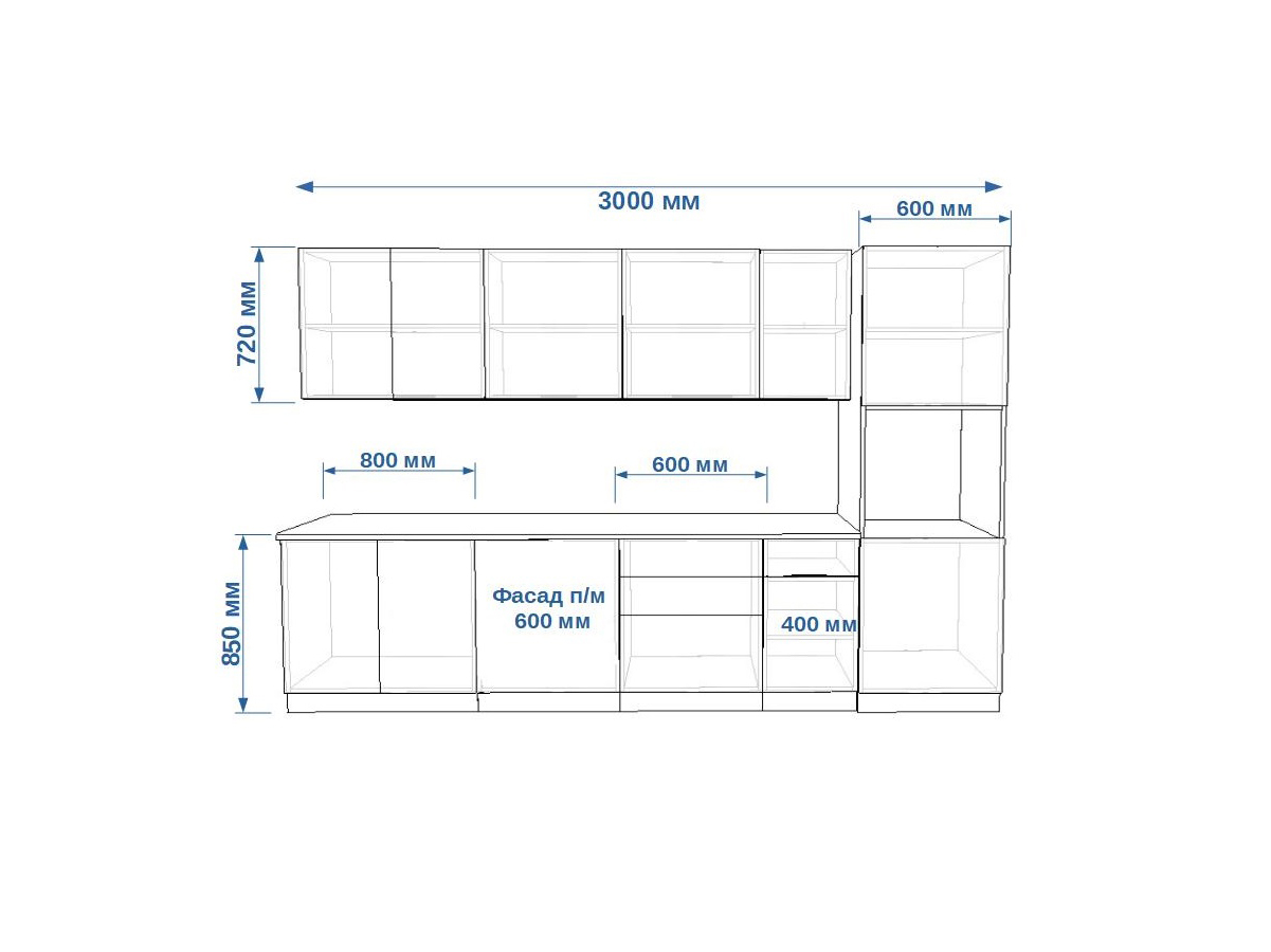 - высота верхних шкафов 720 мм