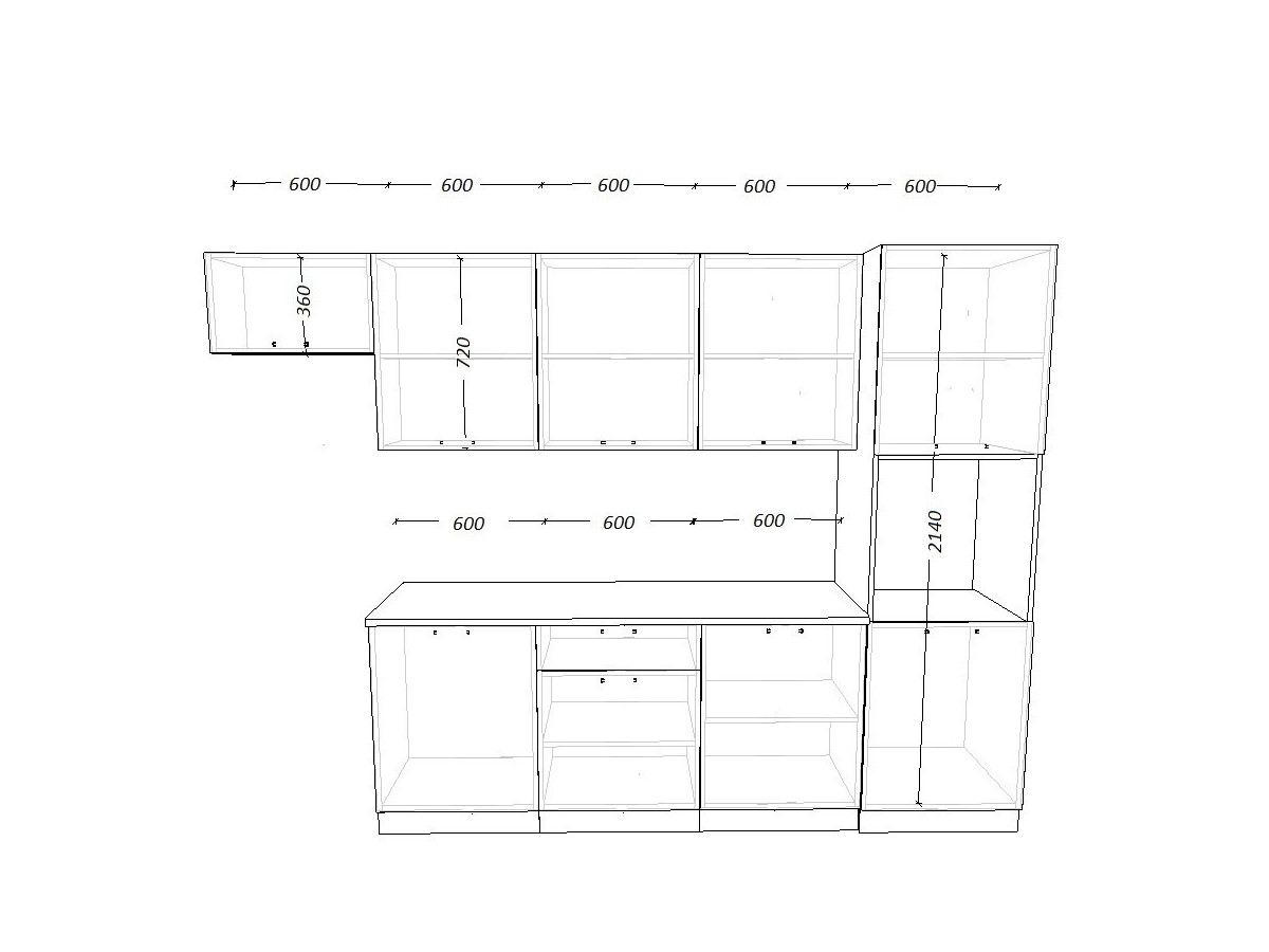 - высота верхних шкафов 720 мм