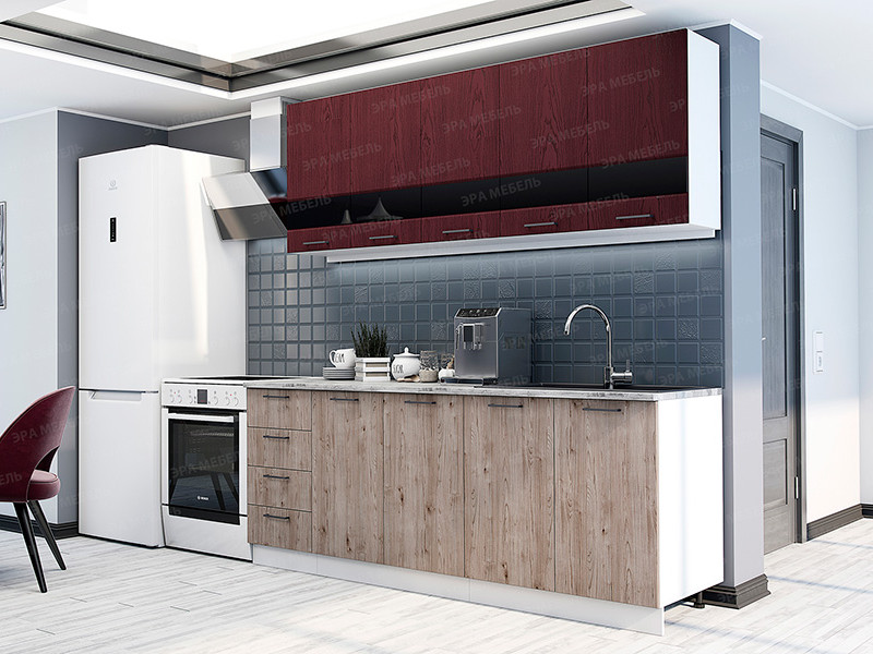- Кухонный гарнитур Астра МДФ 2000 красное дерево патина/дуб галиано