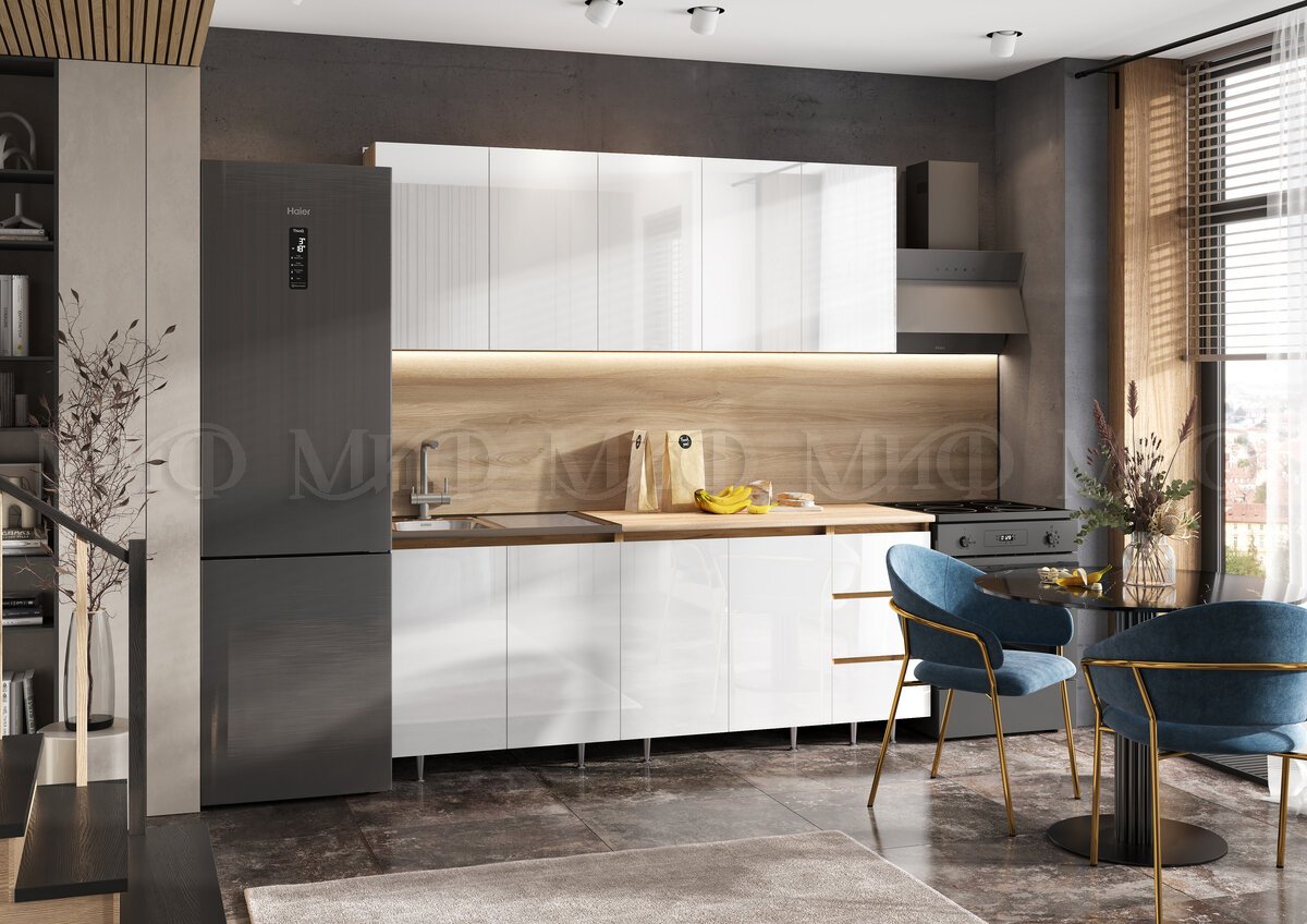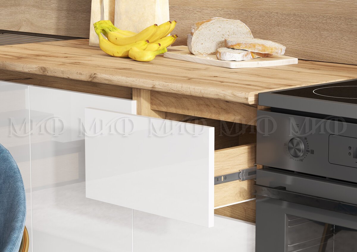 - Кухонный гарнитур Челси 2000 мм Белый/Дуб Крафт