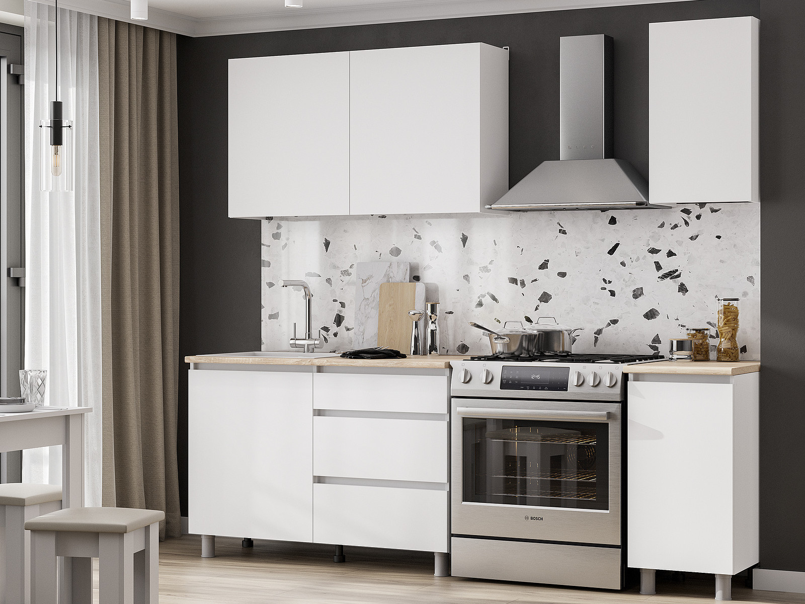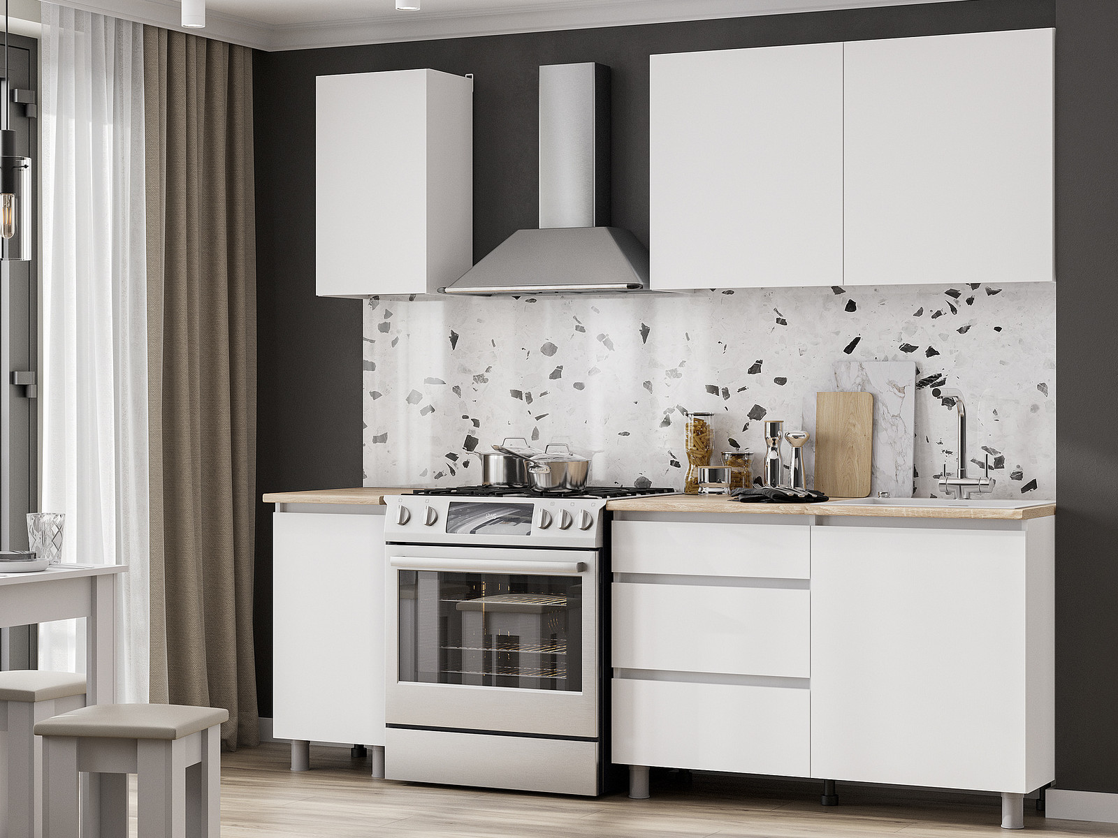 - Кухонный гарнитур Денвер 1600 Белый текстурный