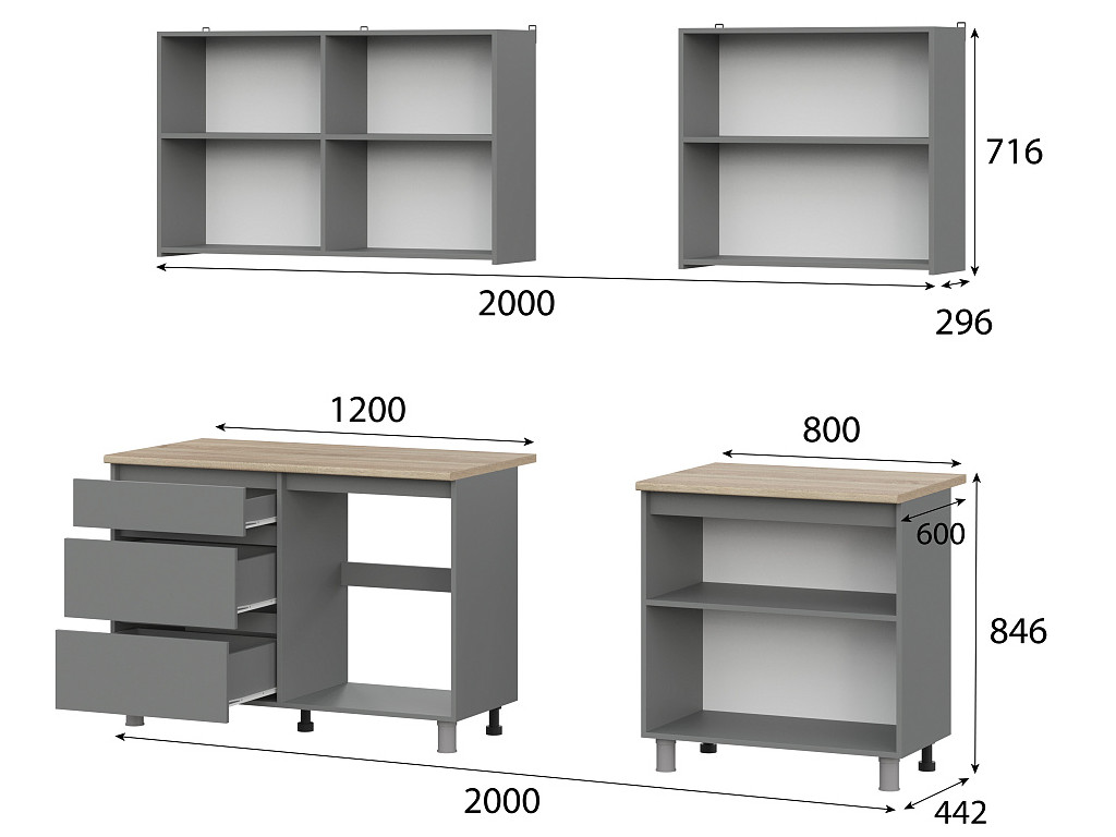 Высота стола со столешницей / высота стола без столешницы - 846 / 820 мм