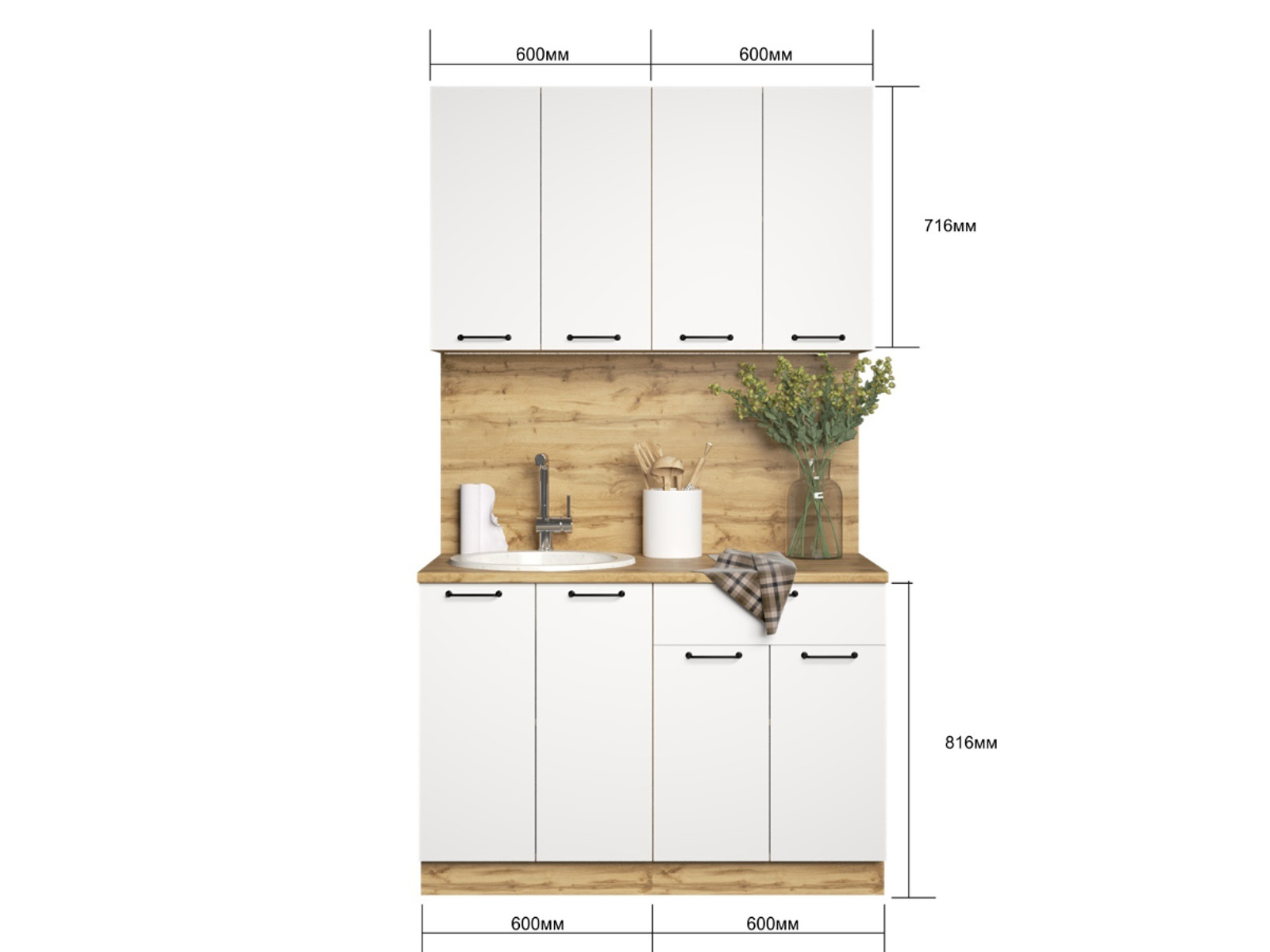 - Кухонный гарнитур Хелмер 1200 мм ЛДСП Вотан/Белый