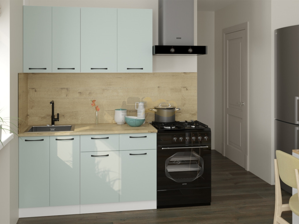 Мойка, смеситель, стеновая панель и посудосушитель в комплект гарнитура не входят.