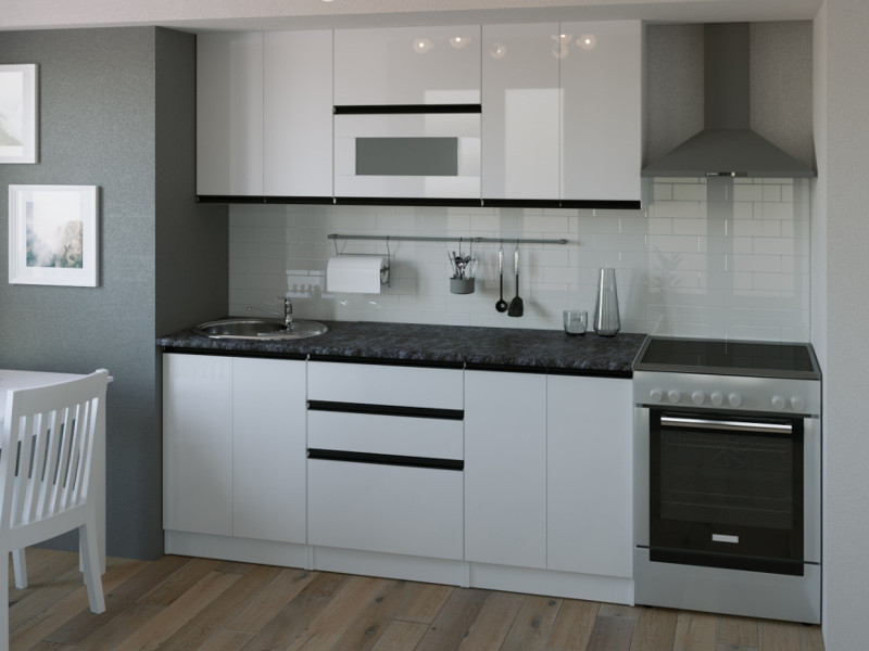 Мойки, смесители и посудосушители в комплекты гарнитуров не входят.