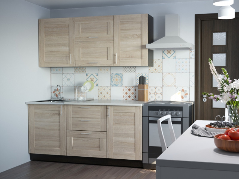 Мойка, смеситель, стеновая панель и посудосушитель в комплект гарнитура не входят.